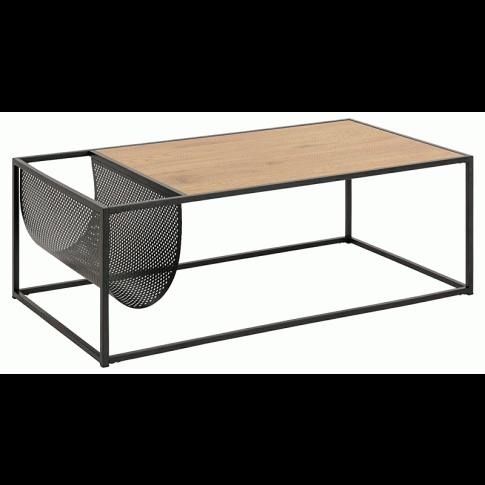 Lubisz takie meble, które łączą w sobie funkcjonalizm z ciekawą, designerską stylistyką? Takie, które są nie tylko modne i stylowe, ale również maksymalnie palearktyczne? Jeśli tak, to mamy dla Ciebie coś specjalnego – to jedyny w swoim rodzaju, świetny stolik kawowy Celix z gazetownikiem umieszczonym przy blacie! Ten fenomenalny mebel zrobi istną furorę w każdym wnętrzu! Loftowa, surowa forma łaczy się tu z wyjątkową wygodą i komfortem użytkowania. Naturalny kolor blatu idealnie zgrywa się z czarną ramą oraz ażurowym gazetnikiem. Nie tylko na blacie stolika Celix, ale i pod nim możesz umieszczać swoje rzeczy. Ten totalnie nowoczesny stolik kawowy jest nie tylko stylowy i designerski, ale również niezwykle funkcjonalny. Jeśli lubisz takie właśnie projekty, to koniecznie sprawdź, jak pomysłowo wykonany Celix sprawdzi się u Ciebie!