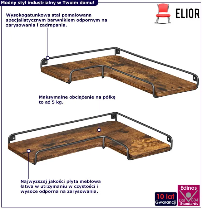 Dotyczy: Zestaw 2 nowoczesnych półek wiszących dąb sonoma - Eblo