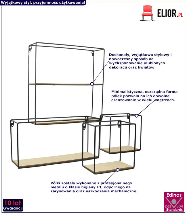 - Modna kolorystyka: czarny, naturalny. Kliknij w link i sprawdź także inne półki wiszące w sklepie Edinos.pl. Stwórz swój praktyczny zestaw mebli.