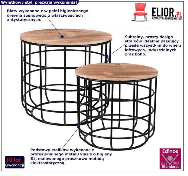 - Modna kolorystyka: czarny, naturalne drewno. Kliknij w link i sprawdź także inne zestawy stolików w sklepie Edinos.pl. Stwórz swój praktyczny zestaw mebli.