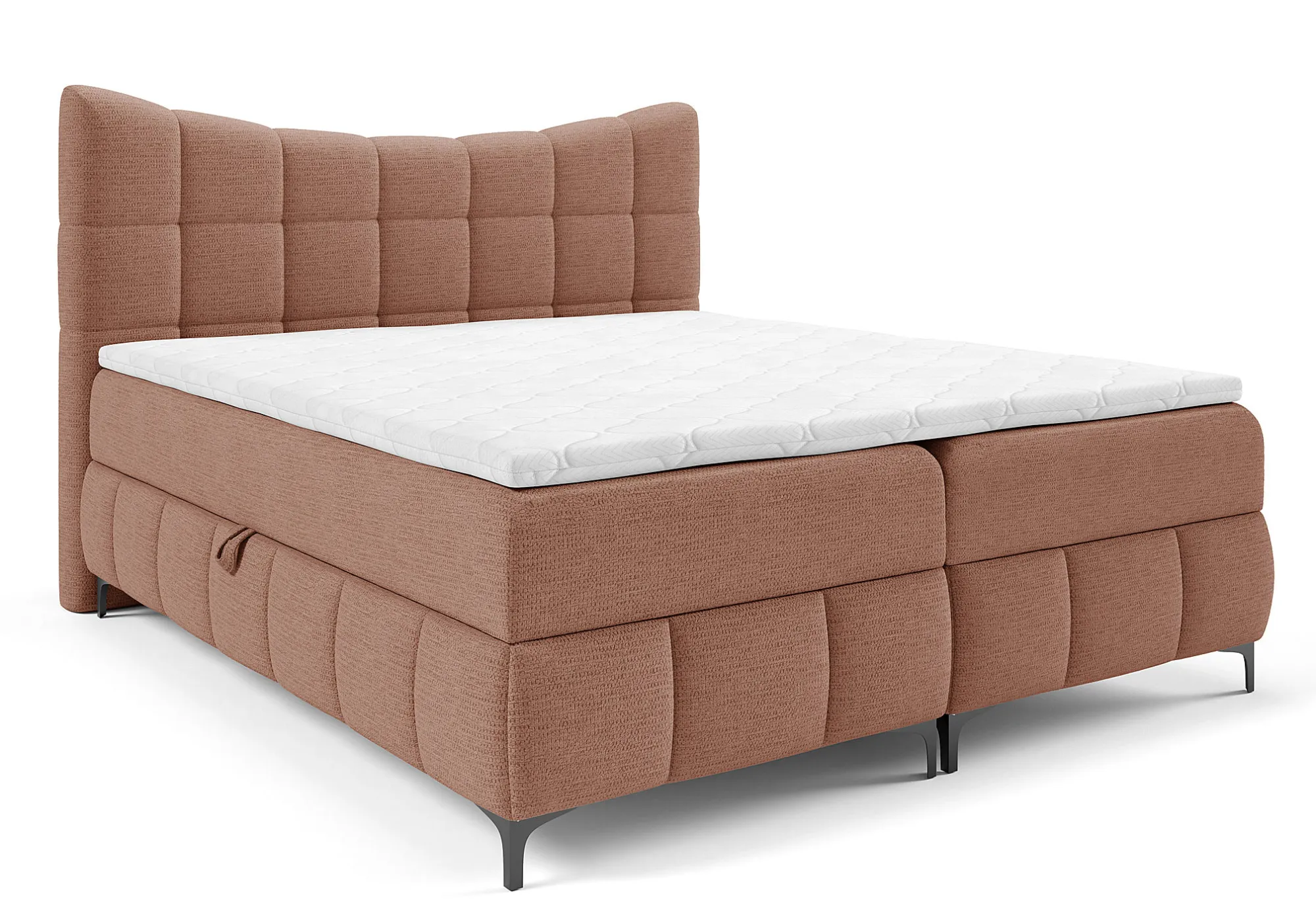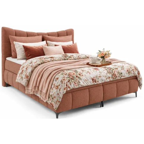 Łososiowe łóżko kontynentalne z pikowanym zagłówkiem Verrado