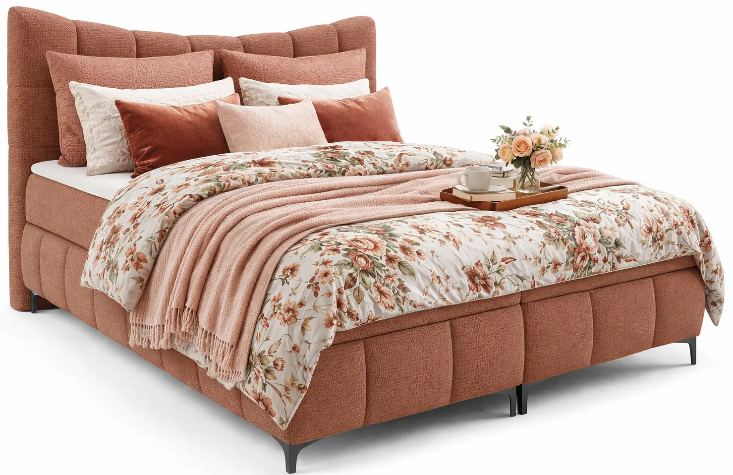 Aranżacja wnętrza z łososiowym łóżkiem Verrado