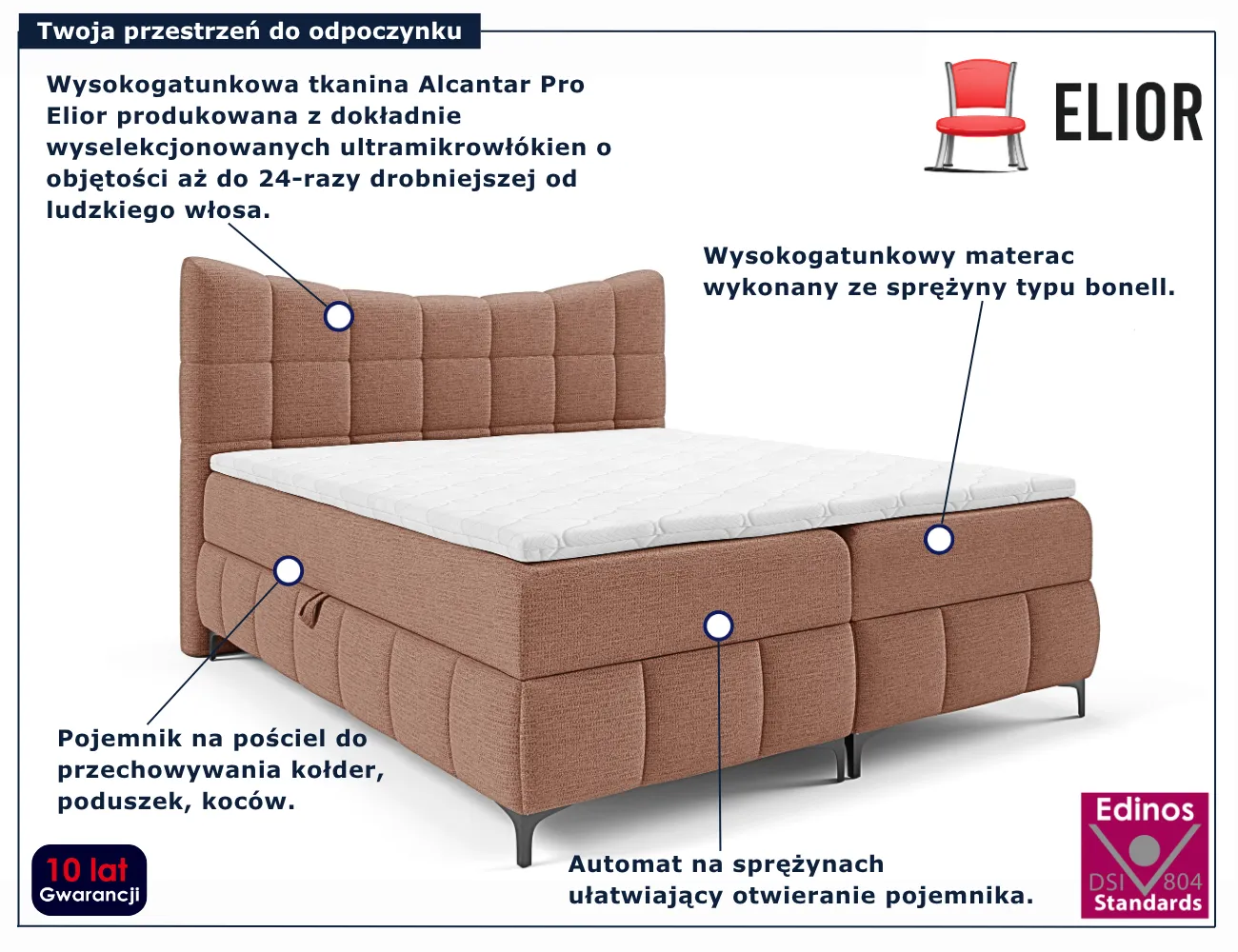• Ozdobne przeszycia na zagłowiu i skrzyniach – subtelny detal, który podkreśla luksusowy design.