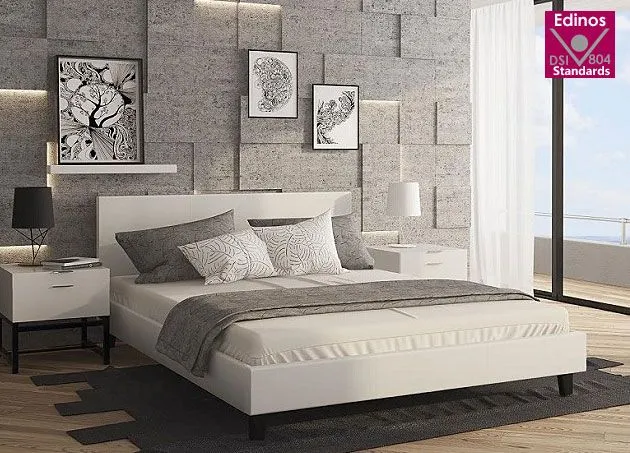 Łóżko Iwaela wyróżnia się nie tylko swoją bajeczną formą oraz wyjątkową wygodą ale także zastosowaniem materiałów najlepszej jakości. To dlatego cieszy się powodzeniem wśród osób lubiących ciekawe rozwiązania. Konstrukcja mebla wykonana została z najwyższej jakości naturalnego drewna oraz płyty meblowej, pokrytej tapicerką z wysokiej jakości skóry ekologicznej. Ten atrakcyjny wizualnie materiał charakteryzuje niezwykłą praktycznością i odpornością na zabrudzenia. Ekoskóra używana przy produkcji mebli marki Elior jest o wiele bardziej odporna na słońce oraz wodę , co pozwala Ci na długie i bezpieczne użytkowanie. Już nie musisz się martwić, że rozlana kawa spowoduje konieczność wymiany mebla. Antyalergiczna skóra ekologiczna została pokryta warstwą polichlorku winylu, dzięki czemu jest także odporna na działanie środków dezynfekujących na bazie rozpuszczalników - chemikalia te niszczą skórę naturalną. Łóżko wyposażone jest w najwyższej jakości drewniany stelaż pod materac umożliwiający stały przepływ powietrza przez materac oraz równomierne odprowadzenie wilgoci. Elastyczne, drewniane listwy zapewniają równomierną dystrybucję ciężaru, umożliwiając optymalną pozycję ciała w trakcie snu. Wyjątkowy i porywający design, połączony z niezwykłą funkcjonalnością... tak właśnie prezentuje się najnowsze łóżko Iwaela marki Elior.