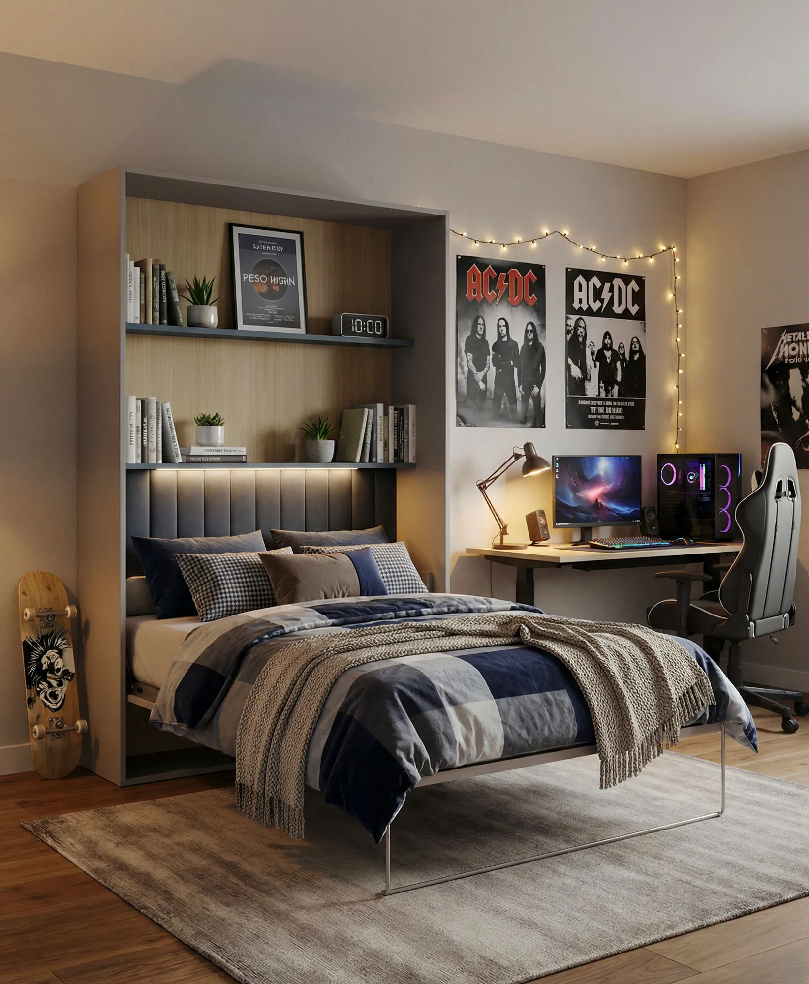 Wnętrze z łóżkiem chowanym w szafie dla nastolatka Zimi 5X kaszmir + niebieski