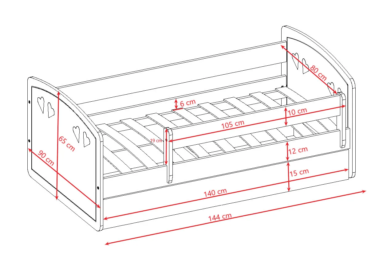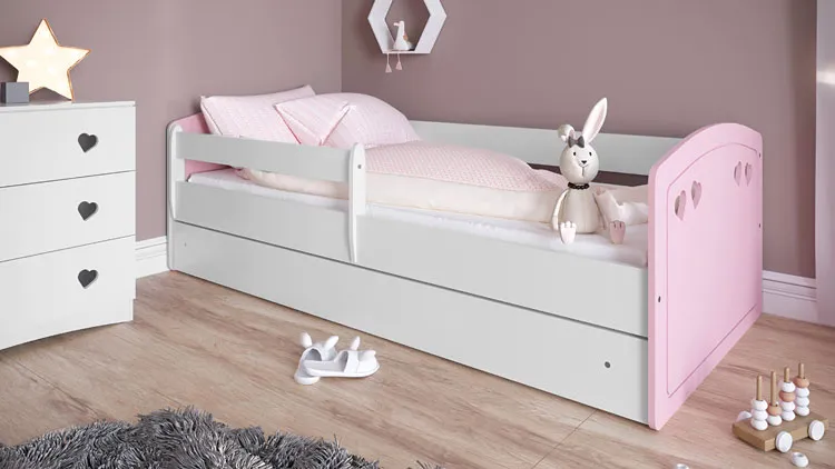 Meble marki Edinos Premium to najwyższej jakości produkty, które zachwycają nie tylko ponadczasową stylistyką, ale także najwyższą jakością materiałów, z których zostały wykonane. Prezentowane łóżko Nolia to dzieło najzdolniejszych projektantów marki Edinos Premium. Łóżko Cecil 3X to mebel stabilny, wytrzymały i wyprodukowany z bezpiecznych surowców. Korpus łóżka został wykonany z wysokogatunkowej płyty meblowej laminowanej o grubości aż 18 mm, klasie higieny E1 i podwyższonej gęstości około 684,8 kg/m3 wg badania normy EN 323. Urocze fronty to mocna płyta MDF, lakierowana farbami ekologicznymi i dodatkowo ozdobiona słodkimi serduszkami. Wszystko to sprawia, że mebel przepięknie się prezentuje, a do tego jest ponadprzeciętnie odporny na zarysowania i wszelkiego rodzaju uszkodzenia mechaniczne. Ponadto zapewniamy Cię, że w procesie produkcji mebla zastosowaliśmy materiały ekologiczne i atestowane, które spełniają europejskie normy bezpieczeństwa. Łóżko Cecil 3X to bezpieczny mebel nawet dla najmłodszego dziecka. Zaokrąglone krawędzie i ruchoma barierka o długości 105 cm zatroszczą o się o bezpieczny sen czy zabawę każdego małego śpiocha. Ponadto łóżko zostało wyposażone w dwudzielną szufladę na kółkach, która przechowa pościel czy zabawki Twojego dziecka, a to jeszcze nie koniec atutów prezentowanego mebla. Łóżko Nolia produkowane jest jako dwustronne, co w praktyce oznacza, że podczas montażu sam decydujesz po której stronie będzie szuflada wraz z ruchomą barierką. To znakomita opcja, która pozwala dostosować łóżko do indywidualnych potrzeb każdego użytkownika. Na Twoją uwagę zasługuje fakt, że w zestawie z łóżkiem otrzymujesz solidny stelaż z wysokogatunkowego drewna brzozowego (sprężynujące listwy stelaża dopasowują się do ciężaru ciała, są odporne na pękanie i zapewniają odpowiednią wentylację materaca), a także materac piankowy o wysokości 8 cm, który zadba o zdrowy i komfortowy sen Twojego dziecka. Materac posiada pokrowiec na zamek błyskawiczny, który z łatwością ściągniesz i wypierzesz, a to pozwoli Ci zachować pełną higienę materaca. Łóżko Cecil 3X montowane jest na śrubach ściągających, dzięki czemu wytrzymuje obciążenie aż do 120 kg (dzięki takiej opcji rodzic może położyć się do snu razem z maluszkiem). Biorąc pod uwagę różne wersje umeblowania pokoju dziecięcego przygotowaliśmy aż dwa warianty kolorystyczne mebla. Wybieraj sposród szarego i pudrowego różu. Wspólnie z marką Edinos Premium stwórz komfortowy i bezpieczny pokój dla swojego szkraba. Zapraszamy.