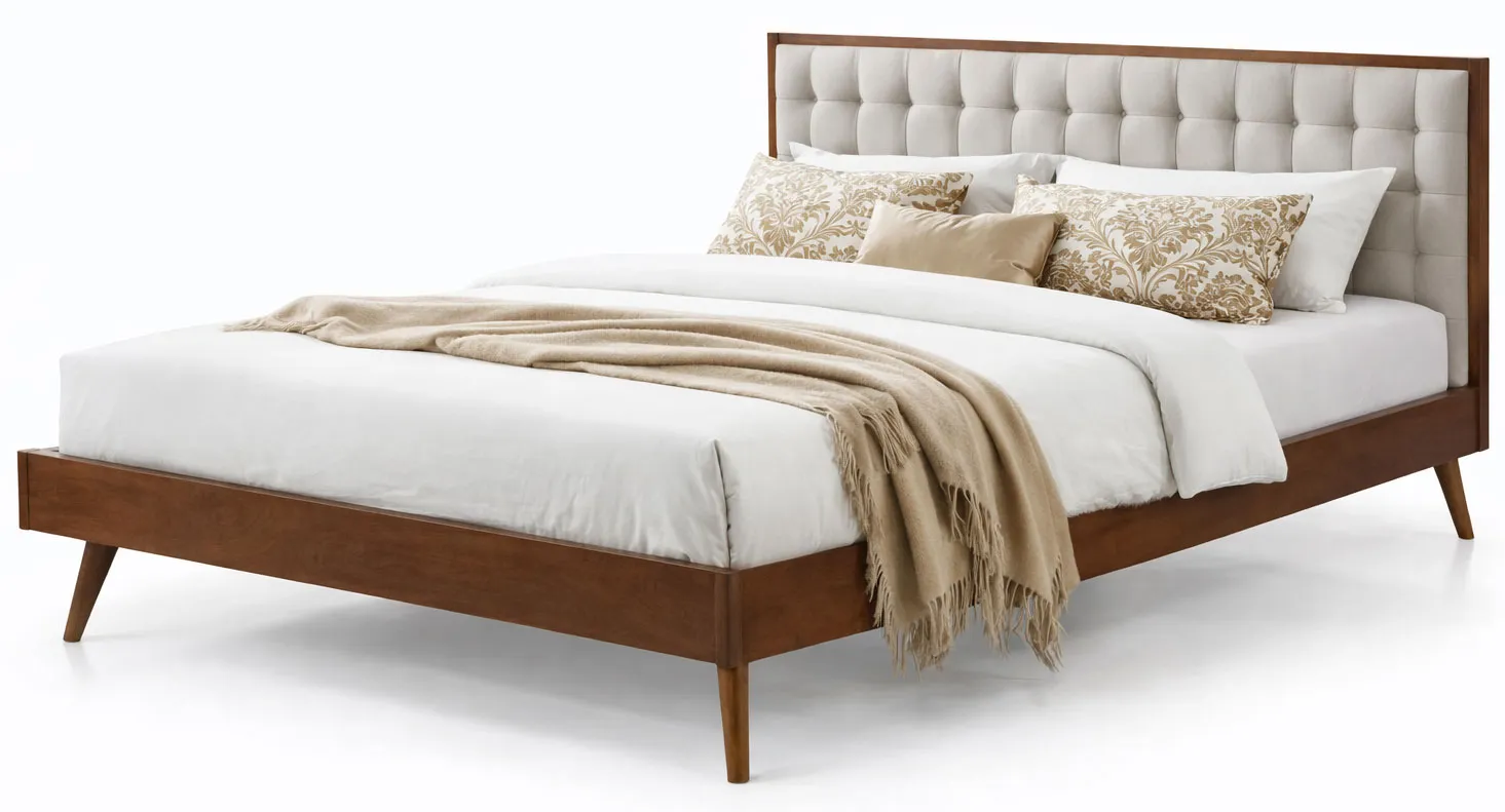 Komfortowo i przemyślanie zaaranżowane łóżko Konwalis wyróżnia profesjonalne wykonanie z wysokiej jakości, szlachetnych surowców meblowych. Obicie łóżko to jakże piękna, gładka w dotyku i niezwykle miękka tkanina o szlachetnych ultramikrowłóknach. Tkanina ta nie mechaci się oraz nie wyciera. Podstawa łóżka Konwalis to z kolei wysokogatunkowe, trwałe drewno lite kauczukowe o właściwościach antystatycznych. Ten higieniczny surowiec to szczególnie dobra opcja właśnie do sypialni, gdyż kurz łatwo nie osiada na drewnie. Doceni to z pewnością każdy alergik, ale nie tylko. Łóżko Konwalis jest zatem nie tylko komfortowo zaprojektowane, ale także bezpieczne w użytkowaniu. Takie połączenie surowców to nie tylko wizualna klasa, lecz przede wszystkim trwałość, stabilność i odporność na wszelkie uszkodzenia. Każdy z nas lubi starannie zaprojektowane, szlachetne meble. Dzięki wyselekcjonowanym surowcom oraz ich profesjonalnej obróbce, beżowo - orzechowe łożko Konwalis nie tylko cieszy oko ponadczasową klasą, lecz przede wszystkim zapewnia komfort i wygodę wynikającą z jego porządnego, trwałego wykonania. To mebel na lata – możesz go użytkować naprawdę długo bez obaw o jego uszkodzenie.