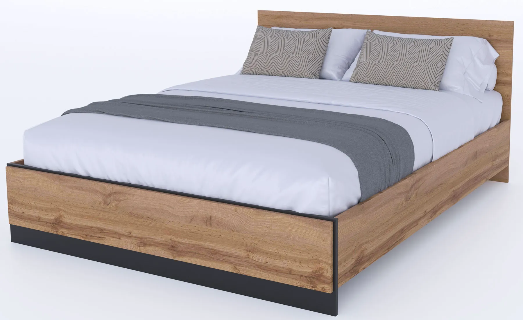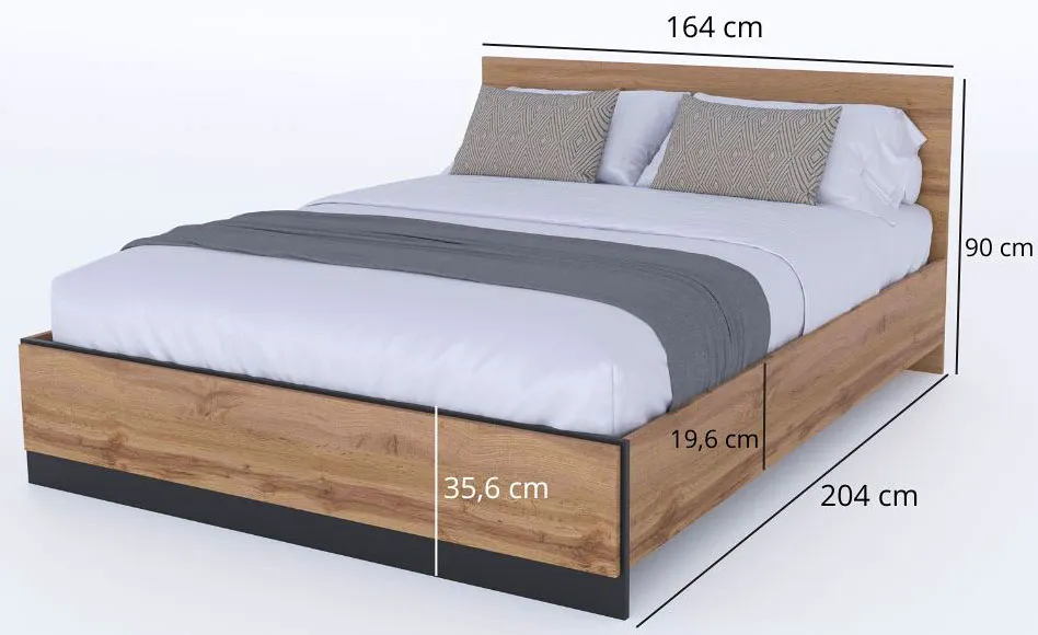 Łóżko dwuosobowe ze stelażem i materacem 160x200 dąb wotan + czarny - Fellia 6X
