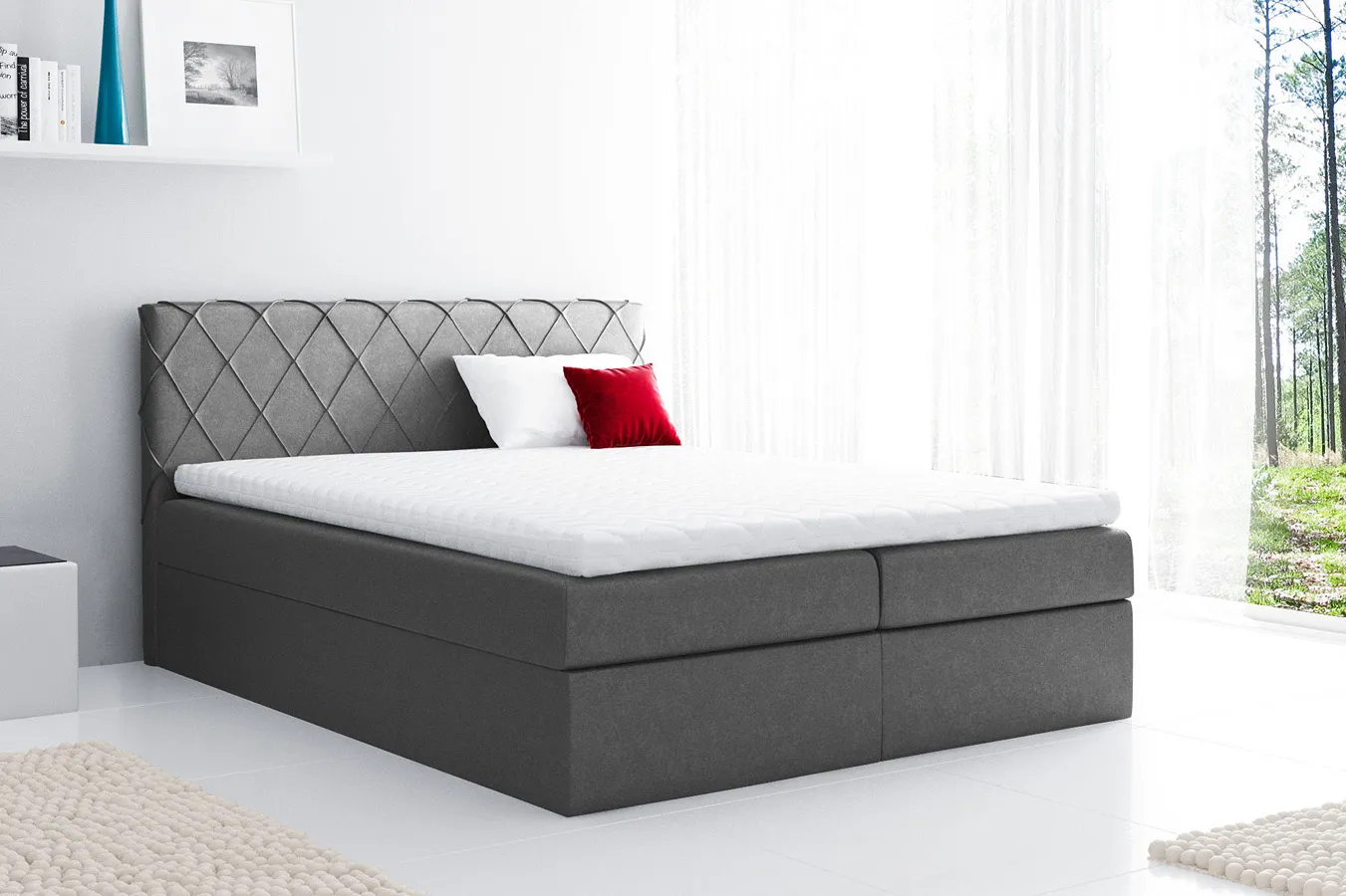- Miejsce na pościel - podwójny pojemnik na pościel z automatami sprężynowymi pomaga zachować porządek w sypialni.