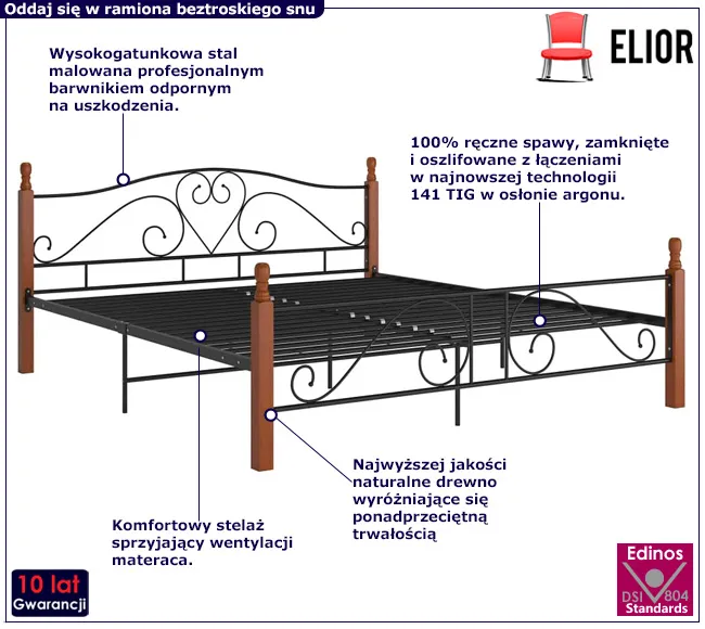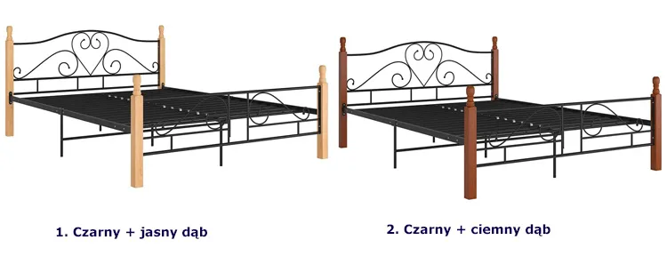• Kolor: czarny + ciemny dąb. W naszej ofercie posiadamy także inne łóżka metalowe.  Kliknij i stwórz swój wyjątkowy zestaw mebli.
