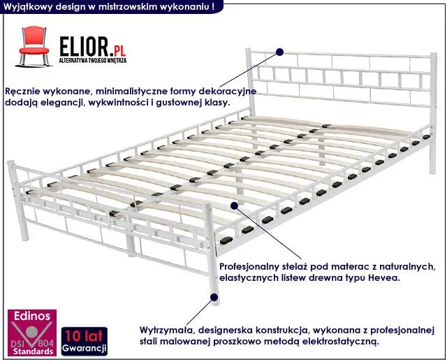 Minimalistyczne łóżko Dexos, wyróżnia się nie tylko swoją bajeczną formą oraz wyjątkową wygodą, ale także zastosowaniem materiałów najlepszej jakości. To dlatego cieszy się powodzeniem wśród osób lubiących ciekawe rozwiązania. Konstrukcja mebla wykonana została z profesjonalnej, podwójnie hartowanej stali, malowanej proszkowo metodą elektrostatyczną, gwarantując najgłębsze nasycenie barwy i mistrzostwo stylu. Profesjonalny stelaż pod materac zbudowany jest z naturalnego i wytrzymałego drewna typu Hevea o elastycznym profilu dla mebli sypialnianych. Wyjątkowy, porywający design, połączony z niezwykłą funkcjonalnością... tak właśnie prezentuje się najnowsze łóżko Dexos.