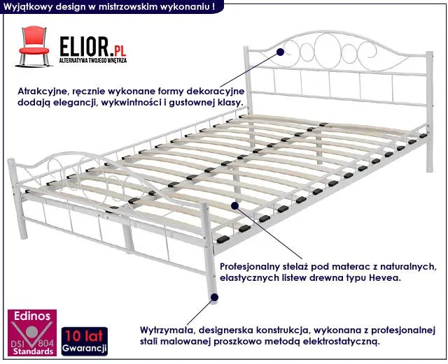 - Łóżko wyposażone jest profesjonalny stelaż pod materac wykonany z wytrzymałego i elastycznego drewna typu Hevea.