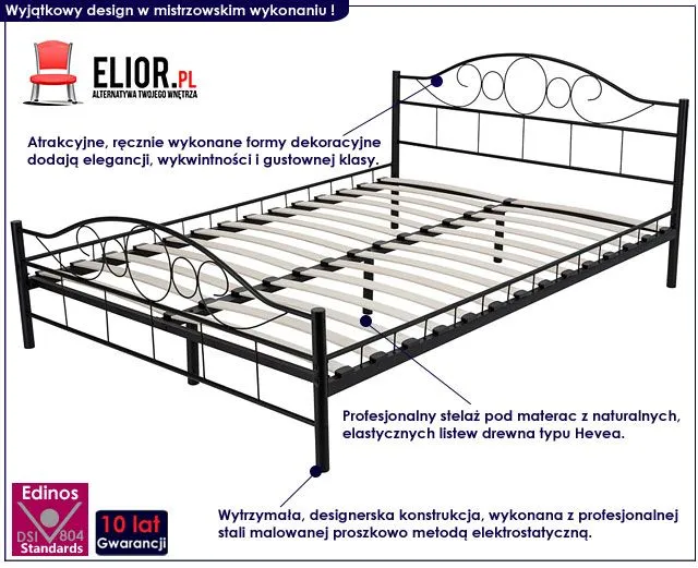 Łóżko Daniels wyróżnia się nie tylko swoją bajeczną formą oraz wyjątkową wygodą, ale także zastosowaniem materiałów najlepszej jakości. To dlatego cieszy się powodzeniem wśród osób lubiących ciekawe rozwiązania. Konstrukcja mebla wykonana została z profesjonalnej, podwójnie hartowanej stali, malowanej proszkowo metodą elektrostatyczną, gwarantując najgłębsze nasycenie barwy i mistrzostwo stylu. Profesjonalny stelaż pod materac zbudowany jest z naturalnego i wytrzymałego drewna typu Hevea o elastycznym profilu dla mebli sypialnianych. Wyjątkowy, porywający design, połączony z niezwykłą funkcjonalnością... tak właśnie prezentuje się najnowsze łóżko Daniels.
