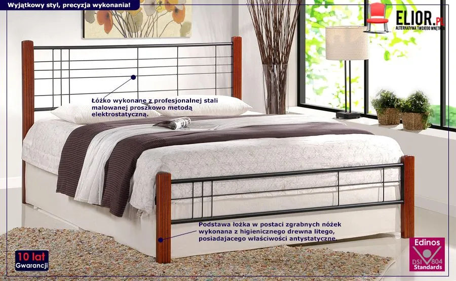 Starannie i przemyślanie zaaranżowane łóżko Firel wyróżnia profesjonalne wykonanie z wysokiej jakości, szlachetnych surowców meblowych. Łóżko powstało poprzez połączenie dwóch profesjonalnych surowców. Pierwszym z nich jest wysokogatunkowa stal o klasie higieny E1, malowana proszkowo metodą elektrostatyczną. Została ona połączona z naturalnym, w pełni higienicznym i pięknie prezentującym się drewnem litym o właściwościach antystatycznych. Takie zestawienie surowców to nie tylko wizualna klasa, lecz przede wszystkim trwałość, stabilność i odporność na wszelkie uszkodzenia. Świetne łóżko Firel pozwala na chwile niezapomnianego relaksu. Jest to łóżko nie tylko komfortowo zaprojektowane, ale także bezpieczne w użytkowaniu. Każdy z nas ceni sobie starannie zaprojektowane, szlachetne meble. Dzięki wyselekcjonowanym surowcom oraz ich profesjonalnej obróbce, interesująco prezentujące się łózko Firel nie tylko cieszy oko ponadczasową klasą, lecz przede wszystkim zapewnia komfort i wygodę wynikającą z jego porządnego, trwałego wykonania. To mebel na lata – możesz go użytkować naprawdę długo bez obaw o jego uszkodzenie. Firel wygląda pięknie i efektownie i na pewno prędko nie wyjdzie z mody.