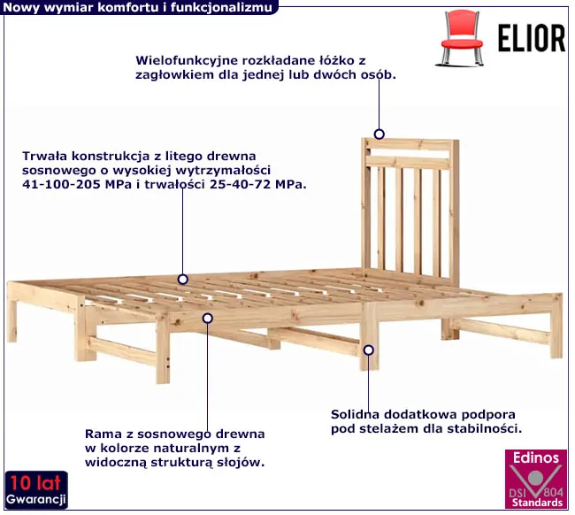 • Trwałość i stabilność: Solidna rama z litego drewna sosnowego zapewnia wytrzymałość i długowieczność mebla.