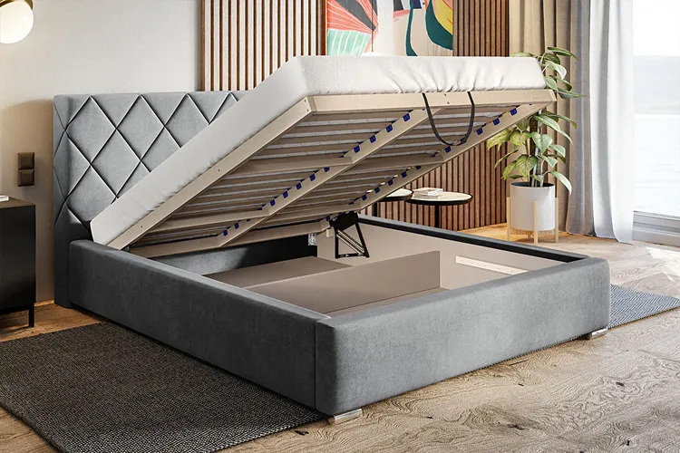 - Pojemny schowek na pościel na całej powierzchni łóżka.