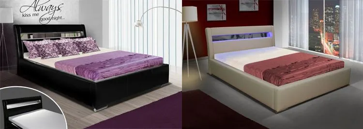 - Komfortowy zagłówek z ozdobną lustrzaną listwą i zamontowanym oświetleniem LED.