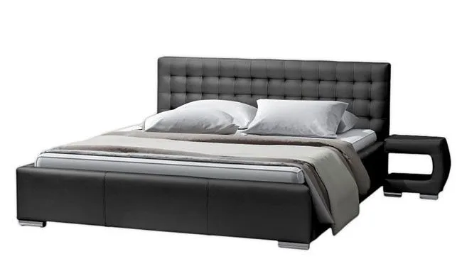 Najwyższej jakości tapicerka, funkcjonalny zagłówek, solidne nóżki, precyzyjny szew to cechy prezentowanego łóżka tapicerowanego Olewio. Nie znajdziesz takiego mebla wśród produktów konkurencji. Designerska tapicerka łóżka pokryta została łatwą do utrzymania w czystości ekoskórą Madryt 7TX (skórą ekologiczną) lub odporną na uszkodzenia tkaniną typu plusz Kronos 8VX lub Jasmine.