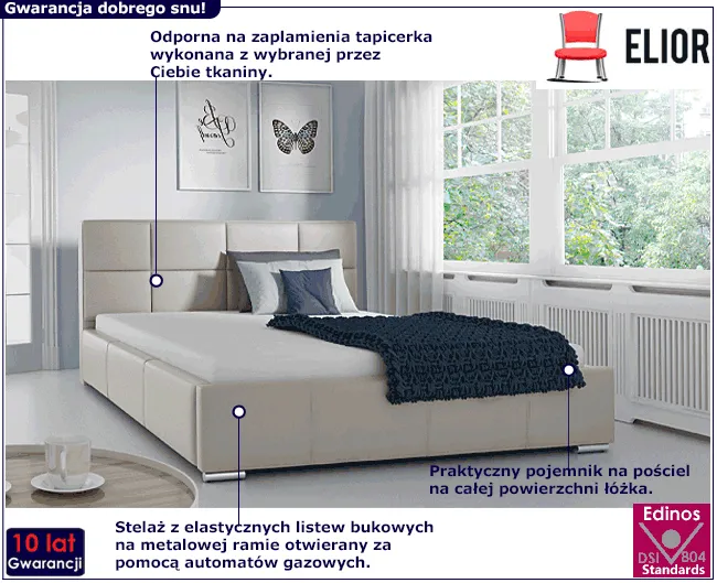 - Wymiar materaca dla łóżka: 200x200 cm. (Wysokiej jakości materace marki Edinos Premium o wymiarze 200x200, dostępne są w naszej ofercie tutaj. Zamawiając materac razem z łóżkiem, oszczędzasz na wspólnej wysyłce).