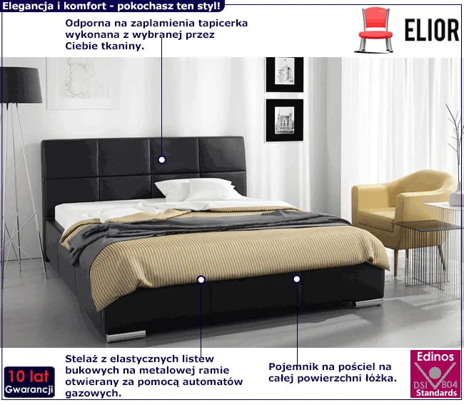 Zdrowy sen to warunek dobrego nastroju i świetnego samopoczucia. Podczas snu regeneruje się ciało i umysł, dlatego jego jakość jest kluczowym elementem szczęśliwego życia. Niestety czasem cierpimy na zaburzenia snu. Często przyczyna bezsenności tkwi w źle dobranym, niewygodnym łóżku. Tapicerowane łóżko Privex 3X marki Edinos Premium to model zaprojektowany specjalnie dla osób szukających szczególnej jakości i komfortu. Jego atutem jest wysoki zagłówek, który nadaje modernistyczny ton w sypialni, a jednocześnie jest przytulnym i komfortowym oparciem dla pleców podczas czytania książki, czy oglądania ulubionego serialu. Dodatkowo skutecznie chroni ścianę przed zabrudzeniem. Konstrukcję łóżka Privex 3X stanowi solidna rama z podwójnej płyty meblowej, metalowy stelaż z elastycznymi listewkami drewnianymi i duży pojemnik na pościel z podnośnikami gazowymi. Zadbaj o siebie i sprawdź jak dobrze się wyśpisz w mistrzowskim łóżku Privex 3X!