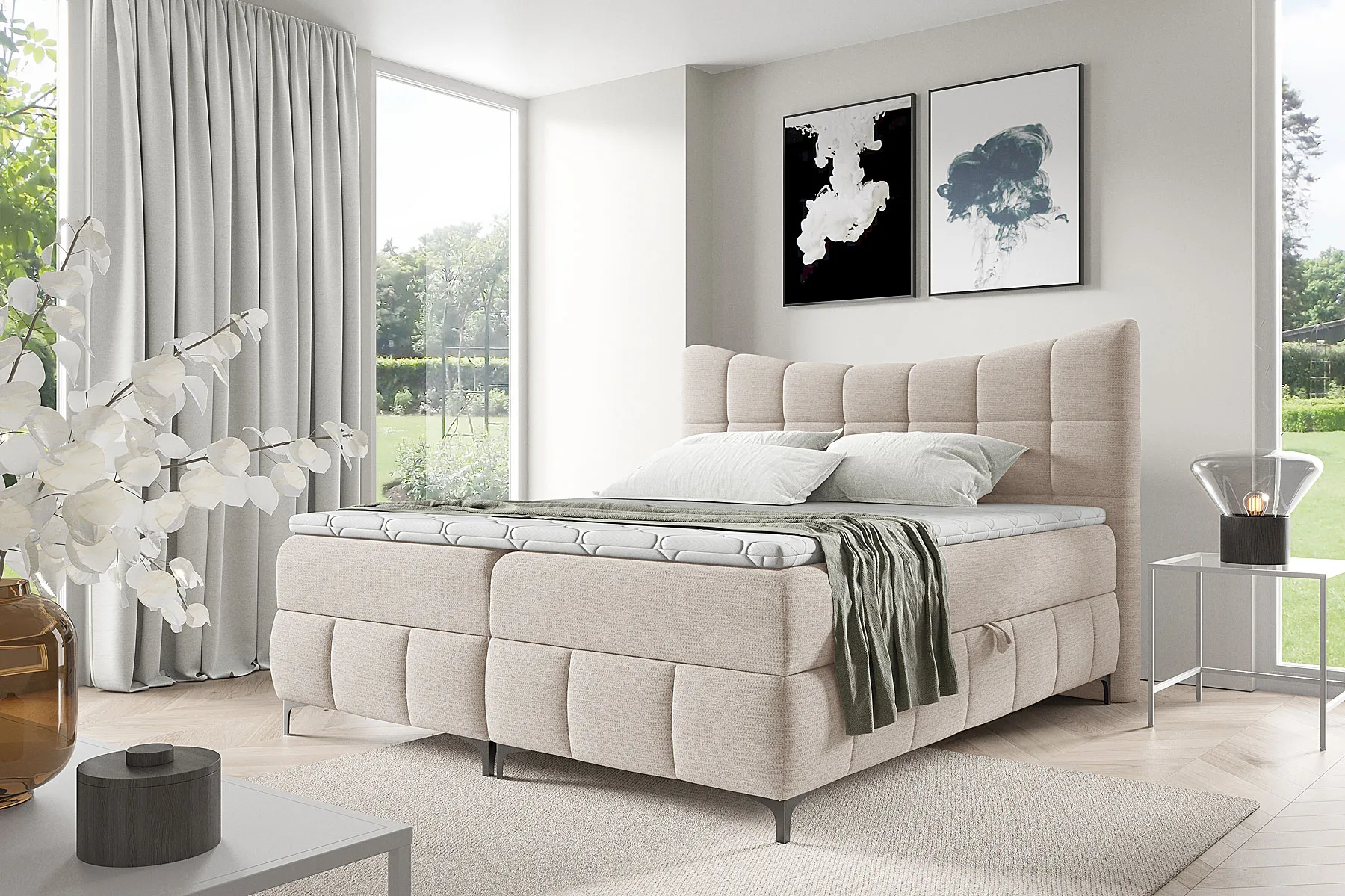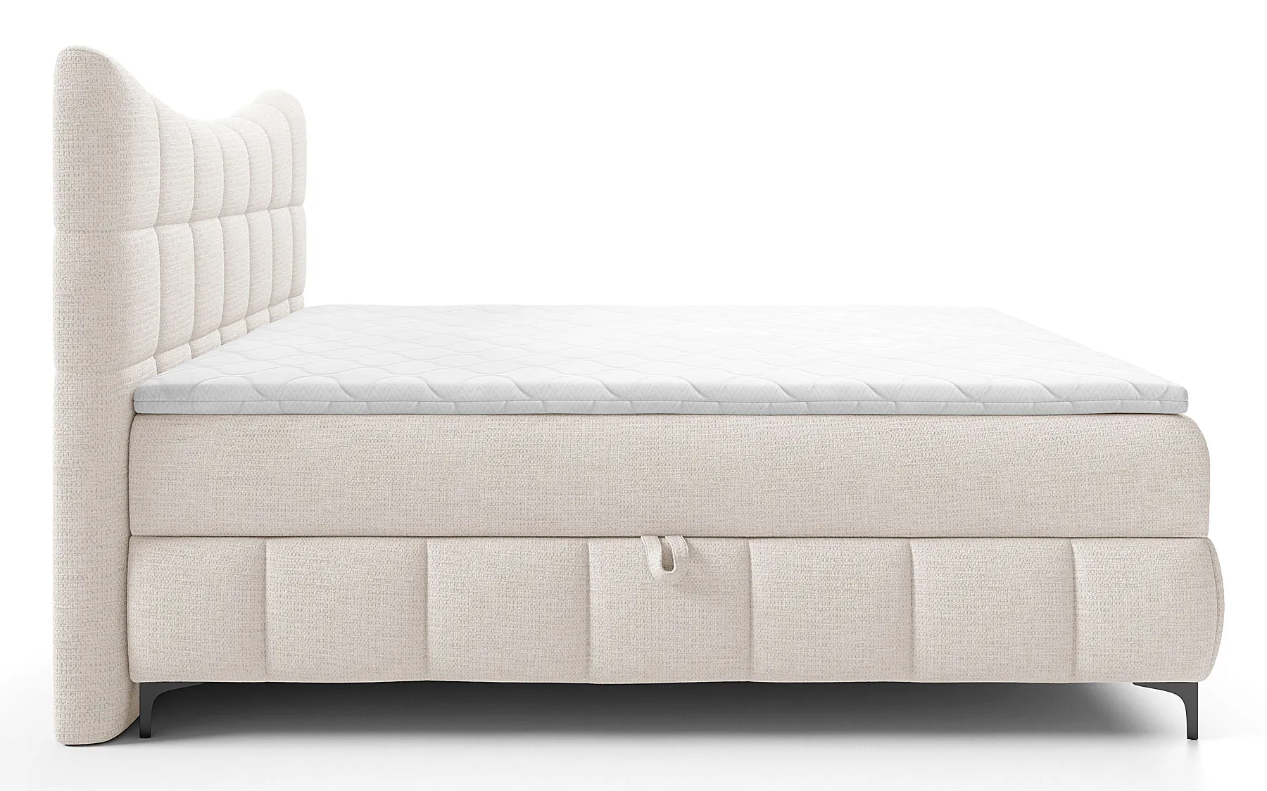 Wyobraź sobie wieczór, kiedy odkładasz wszystkie obowiązki i możesz wreszcie skupić się tylko na sobie. Wchodzisz do sypialni, a tam czeka na Ciebie łóżko Verrado – przestrzeń, która zachęca, by zatopić się w ciszy i miękkości. Wysokie wezgłowie z eleganckimi przeszyciami otula Cię niczym komfortowe oparcie, gdy sięgasz po ulubioną książkę. Gdy nadejdzie pora snu, Verrado odkrywa swoją największą zaletę – sprężysty materac bonellowy w połączeniu z miękkim topperem tworzą powierzchnię spania, która dorównuje komfortem najlepszym hotelowym łóżkom. Budzisz się wypoczęty, pełen energii, gotów na nowy dzień. Praktyczność? O nią też zadbano. Dwa pojemne schowki na pościel otworzysz jednym lekkim ruchem dzięki automatom sprężynowym. Niezależnie od tego, czy chcesz schować zapas koców na zimę, czy dodatkowe poduszki – tu znajdziesz dla nich idealne miejsce. Subtelne, czarne nóżki dodają lekkości całej bryle, a każdy detal, od przeszyć po wykończenie materacy, podkreśla luksusowy charakter mebla.