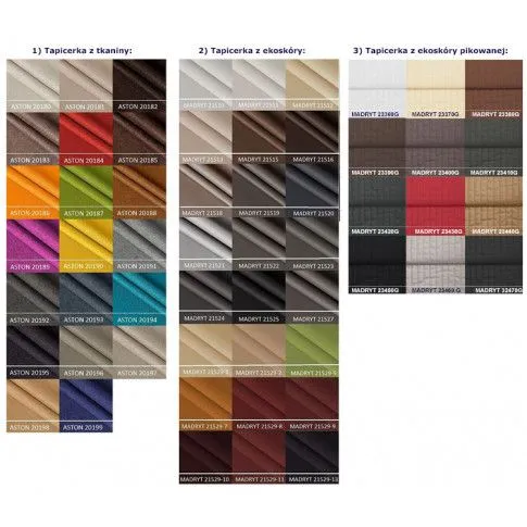 Twoje łóżko Paleo możesz zamówić w innej wersji kolorystycznej - aż 44 kolory tapicerki do wyboru (łóżko możemy pokryć tkaniną Aston V3+ lub ekoskórą Madryt 7TX).