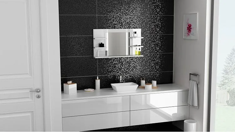 Czarujące lustro łazienkowe Ixelo wyróżnia się nie tylko swoją unikalną formą, ale także zastosowaniem materiałów najwyższej jakości. Rama mebla w kolorze biały połysk wyprodukowana została z najwyższej jakości laminowanej płyty meblowej o klasie higieny E1, uszlachetnionej cienkimi filmami melaminowymi. Posiada także specjalne włókna ułożone różnokierunkowo o strukturze sinusoidalnej, co zapewnia nadanie jej cech jakościowych oraz wytrzymałościowych. Użyty materiał jest wysoce odporny na działanie wilgoci, dzięki czemu mebel z pewnością posłuży Ci przez lata. Prostokątna tafla wykonana jest z podwójnie hartowanego szkła, dającego czyste odbicie bez cieni i zniekształceń. Lustro jest dokładnie polerowane i szlifowane na krawędziach, co gwarantuje pełne bezpieczeństwo użytkowania, jak również odporność na rysy i uszkodzenia. Funkcjonalnym dodatkiem mebla jest aż pięć półek, na których ustawisz wszystkie kosmetyki i akcesoria przydatne do golenia czy zrobienia makijażu. Przekonaj się już dziś, jak zniewalająco lustro Ixelo prezentuje się na żywo!