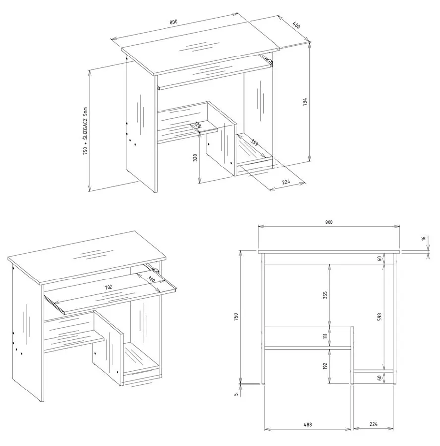 • Wysuwana półka na klawiaturę – zwiększa ergonomię i porządek na blacie.