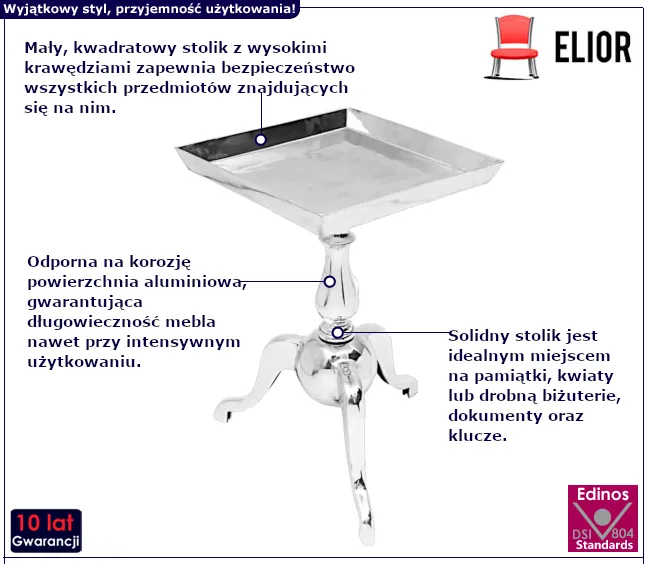 • Kolor: srebrny. W naszej ofercie posiadamy także inne małe stoliki do salonu.