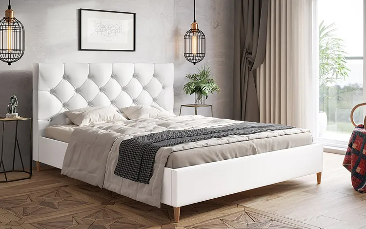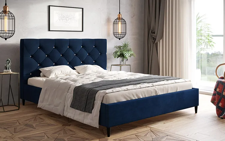 3. Pikowany kryształkami zagłówek - stanowi komfortowe oparcie dla pleców, chroni ścianę przed zabrudzeniem i nadaje sypialni charakteru wytwornej elegancji.