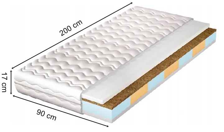 Materac piankowo-kokosowy z pokrowcem 90x200 - Zubro
