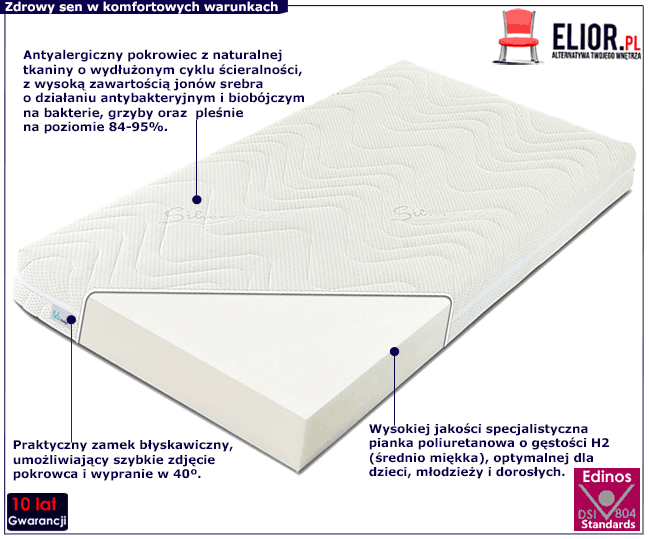 - Materiał: Antyalergiczna pianka poliuretanowa o twardości H2.