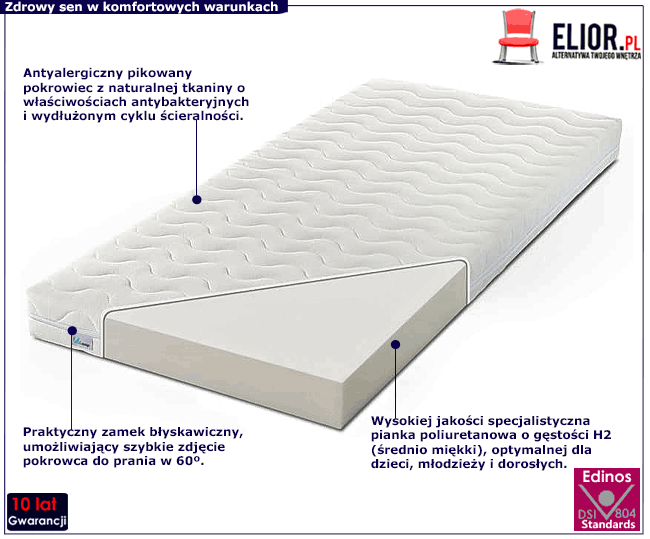 - Materiał: Antyalergiczna pianka poliuretanowa o twardości H2.