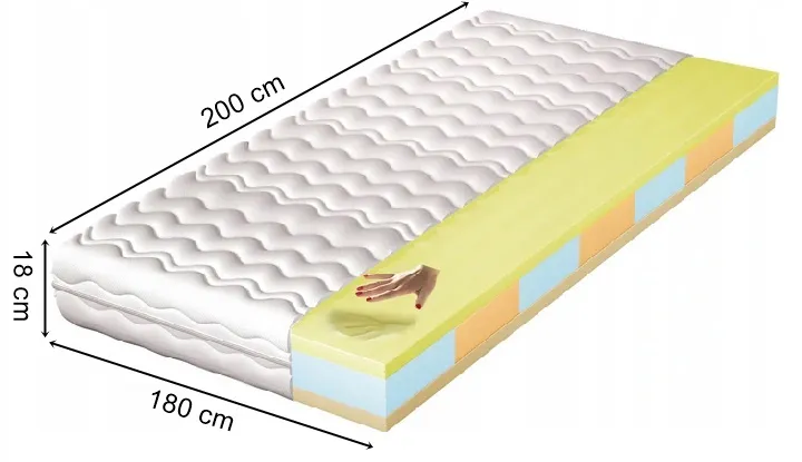 • Pianka wysokoelastyczna: 3 cm warstwa o właściwościach antyalergicznych dzięki doskonałej przepuszczalności powietrza.