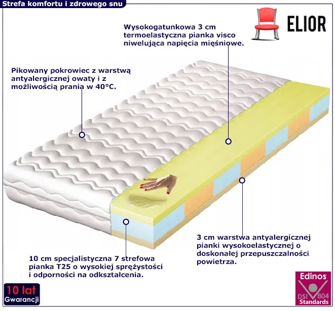 • Pianka 7-strefowa T25: 10 cm warstwa materaca o wysokiej elastyczności i sprężystości.
