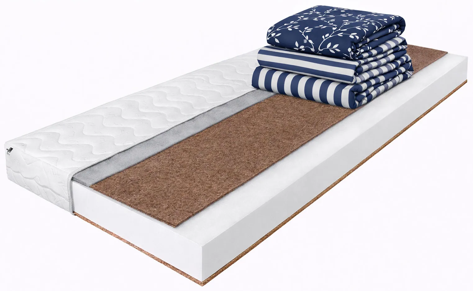 • Mata kokosowa: Dwie 1 cm maty z naturalnego kokosa, które nadają materacowi twardości, działają przeciwgrzybiczo i antyalergicznie, chroniąc przed roztoczami i bakteriami.