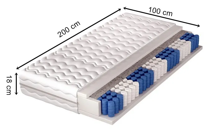 • Wymiary materaca: wysokość: 18 cm, szerokość: 100 cm, długość: 200 cm.