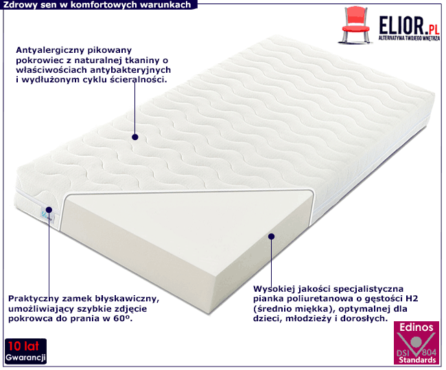 - Materiał: Antyalergiczna pianka poliuretanowa o twardości H2.