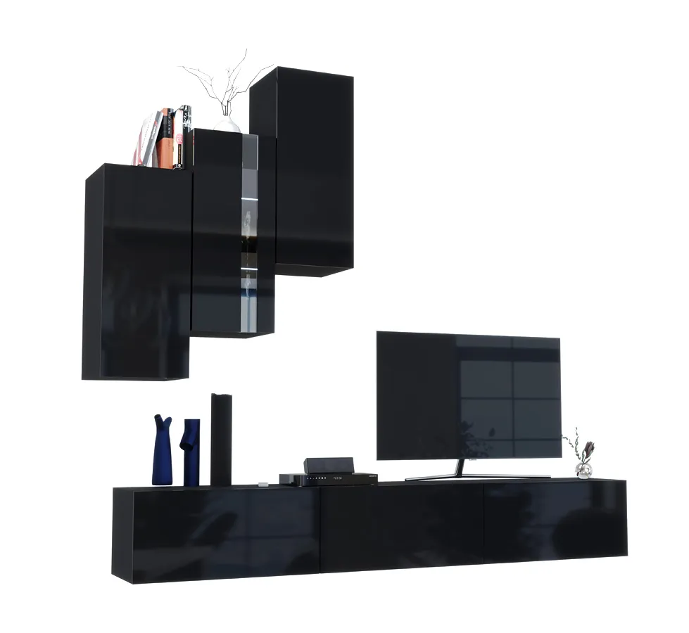 Meblościanka modułowa Sofari to wyjątkowy projekt marki Edinos Premium dedykowany osobom poszukującym nowoczesnej, oryginalnej i niedrogiej alternatywy dla tradycyjnej salonowej meblościanki. Sofari to system modułowych szafek ściennych wyróżniających się solidnym wykonaniem, funkcjonalnością i modernistycznym wzornictwem. Meblościanka Sofari składa się 6 prostych montowanych naściennie za pomocą uniwersalnej listwy montażowej. Zaletą zestawu jest możliwość dowolnej konfiguracji szafek zgodnie z metrażem pomieszczenia i indywidualnym pomysłem aranżacyjnym. Proste, geometryczne formy bez zbędnych detali dekoracyjnych, klasyczna kolorystyka oraz efektowne fronty wykończone na wysoki połysk to doskonały wybór do kompleksowej aranżacji salonu, pokoju dziennego lub kawalerki w modnym minimalistycznym klimacie.