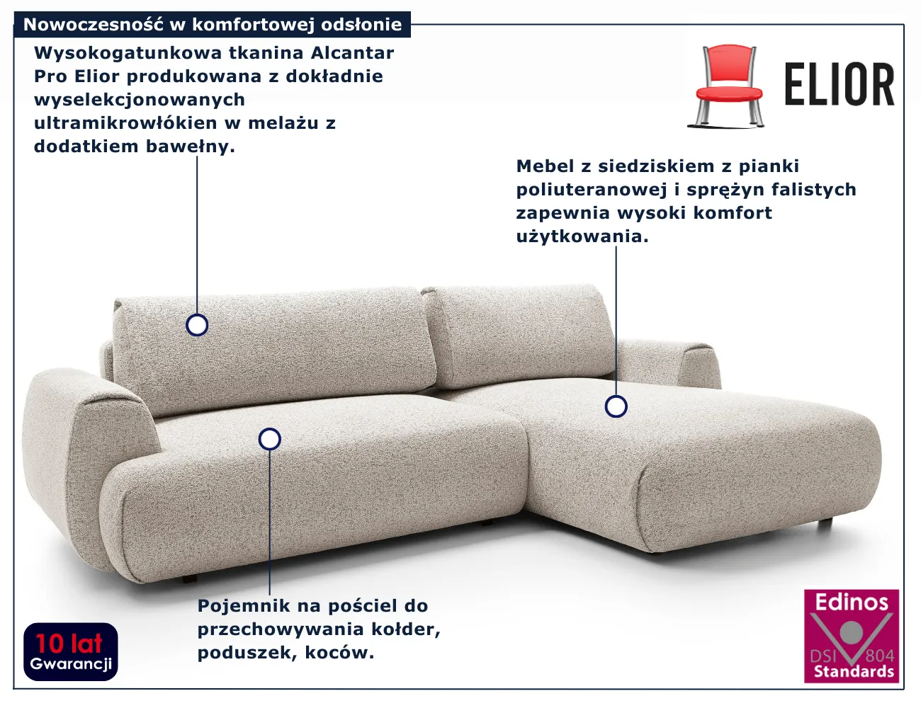 Dotyczy: Nowoczesny narożnik rozkładany ecru - Mezzia 3X