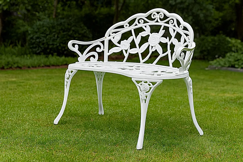 Trudno wyobrazić sobie stylowy ogród bez miejsca, w którym można usiąść i po prostu odpocząć. Wygodna ławka to absolutnie minimum w przestrzeni otaczającej Twój dom. Ważne, aby taki mebel był nie tylko praktyczny, ale również dobrze się prezentował – ostatecznie przecież ogród to miejsce licznych, towarzyskich spotkań. Dziś pragniemy zaprezentować Ci bardzo wytrzymałą ławkę z metalu – Saida. Świetnie odnajdzie się ona także na werandzie, patio lub balkonie. Jej wysmakowane wzornictwo nada każdemu z tych miejsc szykownej klasy!
