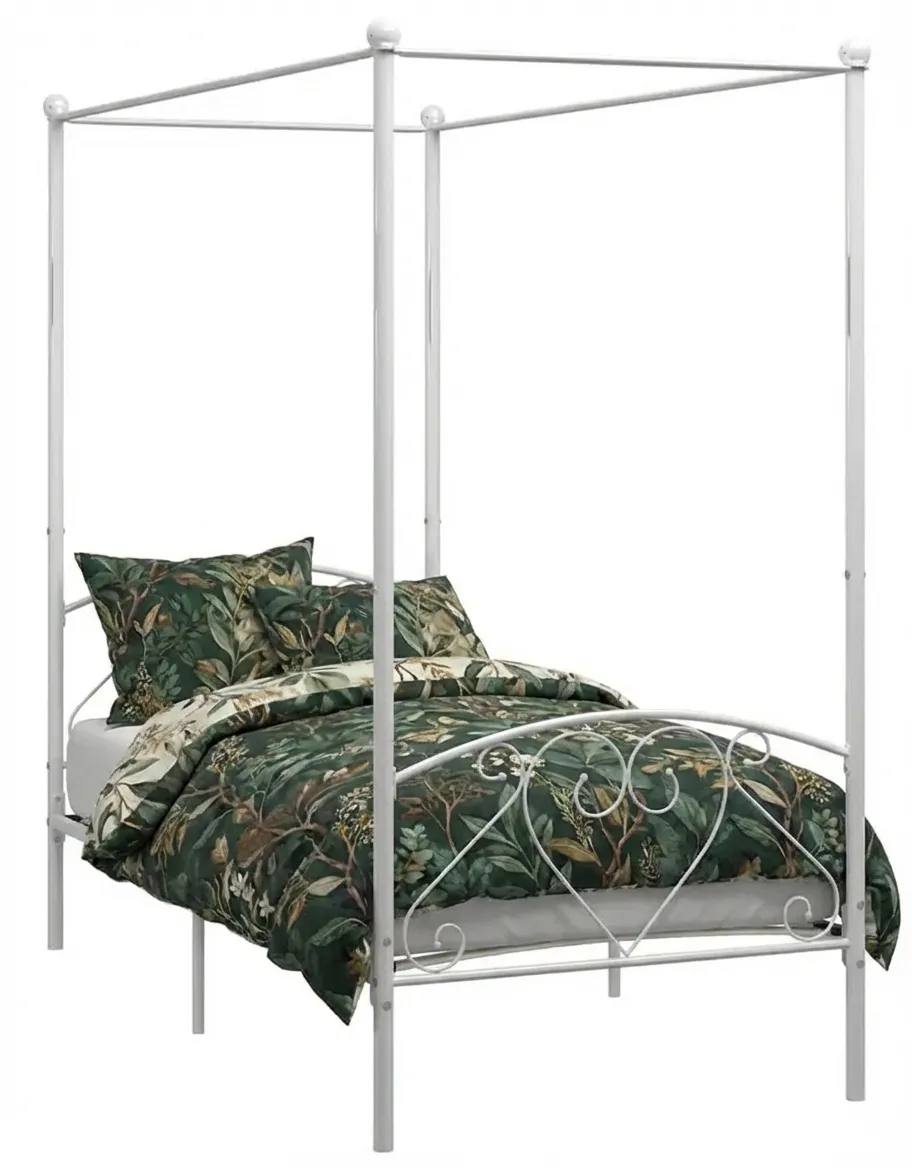 Dotyczy: Szare metalowe łóżko rustykalne z baldachimem 120x200 cm - Nila