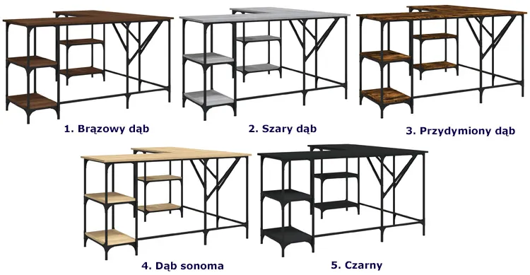 Dotyczy: Biurko narożne gamingowe loft z półkami szary dąb - Scardif