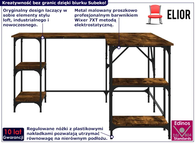 Dotyczy: Industrialne biurko narożne gamingowe brązowy dąb - Scardif