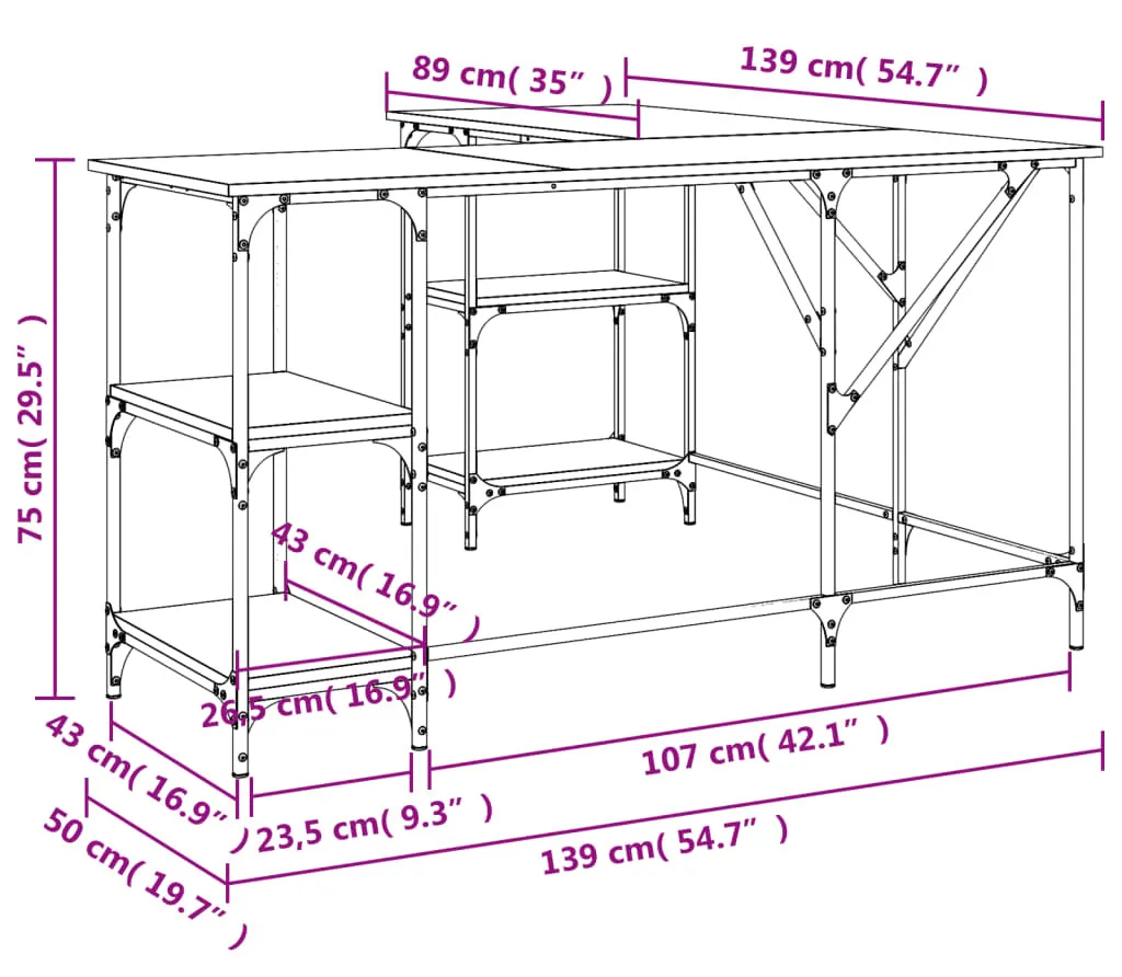 Dotyczy: Biurko narożne w kształcie litery L w stylu loft dąb sonoma - Scardif