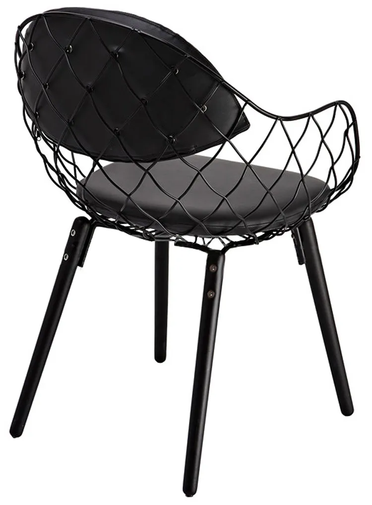 Sylwetka krzesła stworzona w niepowtarzalny sposób, kształtuje się w oryginalny i temperamentny fason podkreślający masywność całej konstrukcji. Oparcie krzesła uformowane na kształt siatki nadaje zadziornego charakteru i ciekawego ujęcia przestrzeni. Spędzając dużą ilość czasu w domu na pewno ważne jest dla Ciebie jego wnętrze, abyś mógł poczuć się w nim swobodnie. Niewątpliwie też cenisz sobie wygodę. Dlatego więc zadbaliśmy o Twoją odpowiednią pozycję ciała podczas siedzenia. Od tej pory możesz zapomnieć o bólu pleców, krzesło Sarkon nie pozwoli na to, abyś czuł dyskomfort podczas jego użytkowania! Dzięki profesjonalnie wyprofilowanemu oparciu komfort podczas użytkowania określisz na najwyższym poziomie. Siedzisko krzesła zostało stworzone z najwyższej jakości ekoskóry, która jest bardzo łatwa w utrzymaniu czystości. Co jest kolejnym argumentem, dla którego ten produkt powinien znaleźć się w Twoim mieszkaniu! Nie będziesz musiał tracić czasu na uporczywe czyszczenie tapicerki, wystarczy delikatnie przetrzeć siedzisko zwilżoną ściereczką, aby pozbyć się niechcianych zabrudzeń. Ponadto ten wysublimowany i trwały materiał sprawdzi się w typowo męskich aranżacjach, w których przeważa zdecydowany i industrialny styl. Stelaż siedziska, pod poduszką z ekoskóry to ciekawa propozycja metalowej konstrukcji ukształtowanej w pomysłową mozaikę. Całość wsparta wytrzymałymi nogami z naturalnego drewna bukowego, które charakteryzuje się nadzwyczajną wytrzymałością podczas użytkowania. Dodatkowo pomalowane na czarny kolor i lakierowane, a także poddane konserwacji specjalnymi środkami ochronnymi o naturalnym składzie bez alergenów.