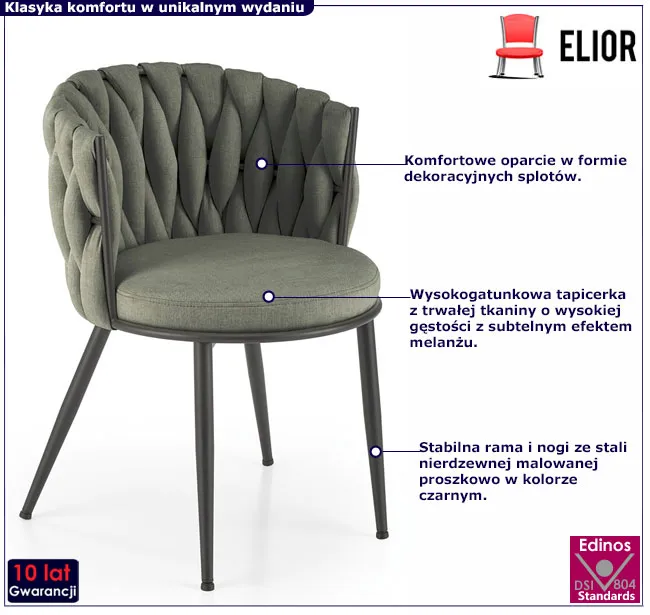 • Detale: Unikalna forma oparcia z formie artystycznej plecionki z efektem 3D.