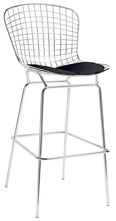 - Materiał: całość mebla to najwyższej jakości metal o wysokim połysku, odporny na korozję i uszkodzenia mechaniczne. Siedzisko wyposażone w poduszkę z ekoskóry.