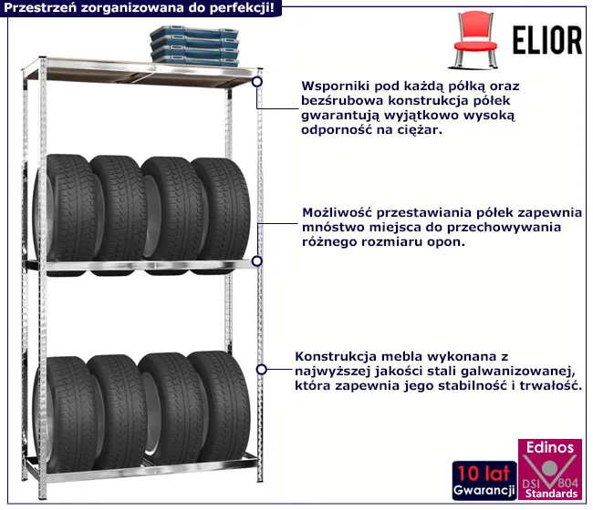 • idealny do schludnego uporządkowania opon w garażu, piwnicy lub warsztacie