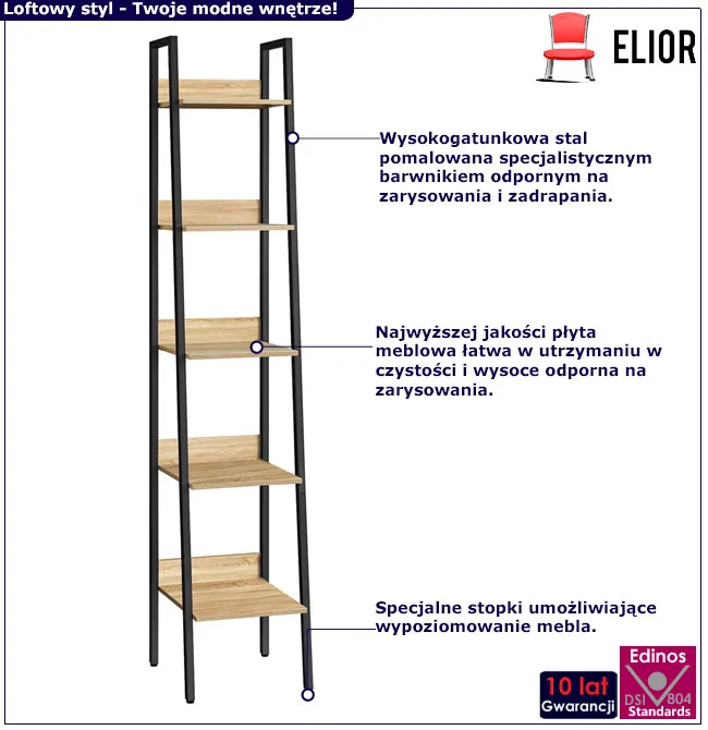 Dotyczy: Wąski industrialny regał metalowy dąb artisan - Marinex
